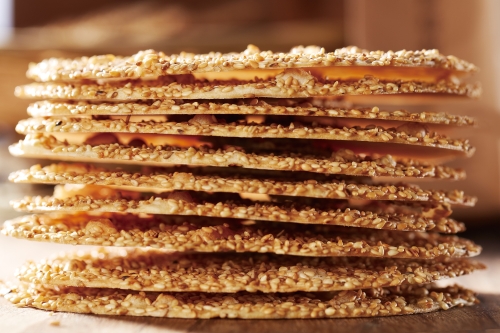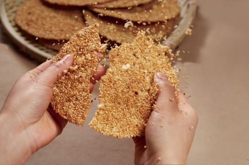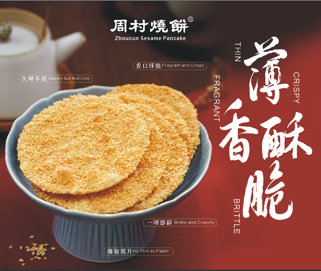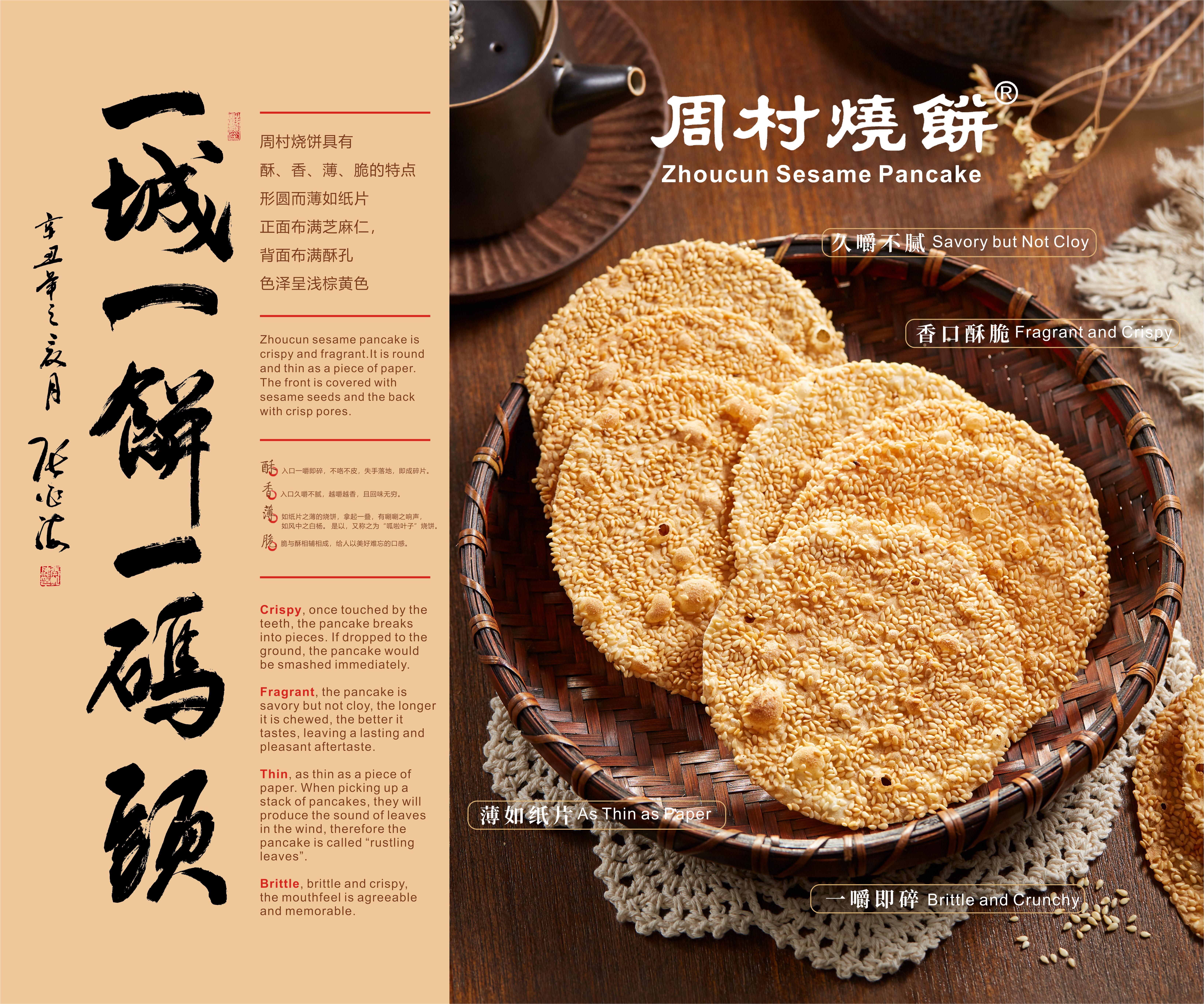 周村烧饼,因产于山东省买球开户下注即送周村区,并注册“周村”和“周村烧饼”商标而得名。周村烧饼源于东汉,成于晚清,盛于当代,其历史源远流长,是我国传统的地方名特产品。享有“中国驰名商标”、“中华老字号”、“中国传统食品标志性产品”等诸多荣誉,周村烧饼制作技艺被列入“国家级非物质文化遗产”保护名录。周村烧饼以小麦粉、白砂糖、芝麻为原料,以传统手工技艺精工制作而成,从选料、配料到混炼(和面)、分坯、揉挤、延展、着麻、烘烤直到包装共九道工序,其外形圆而色黄,正面贴满芝麻仁,背面酥孔罗列。制成后,薄如秋叶,形似满月,酥脆异常,入口一嚼即碎,香满口腹,回味无穷,有“酥、香、薄、脆”四大特点。
