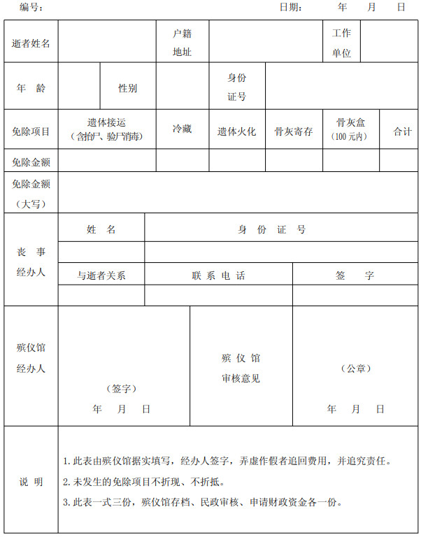 免除基本殡葬服务费用申请表