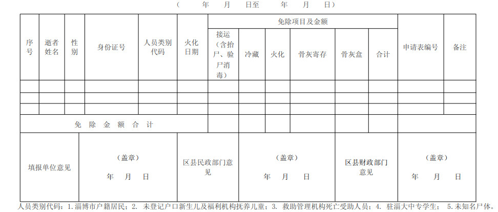 免除基本殡葬服务费用汇总表