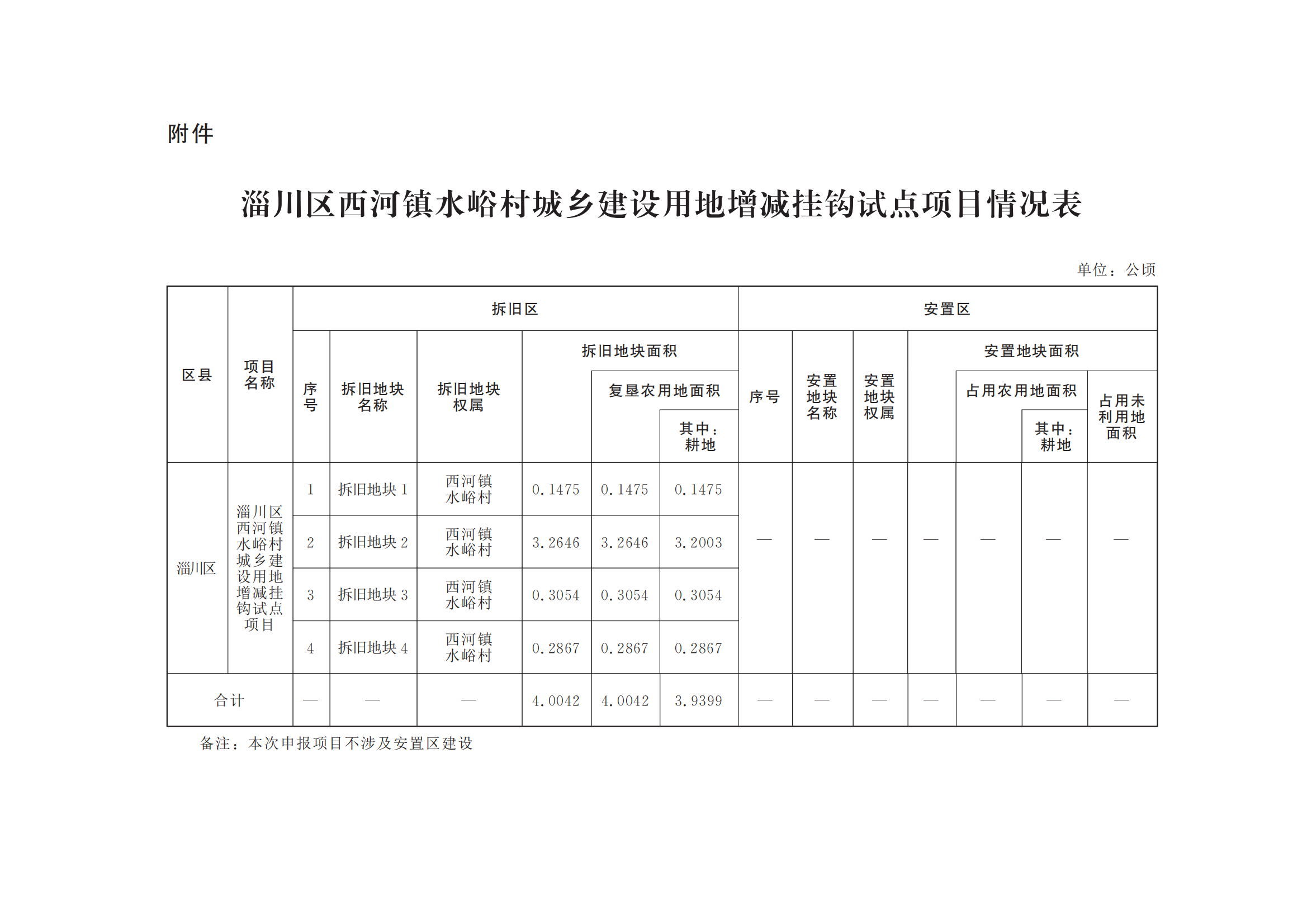 附件:淄川区西河镇水峪村城乡建设用地增减挂钩试点项目情况表
